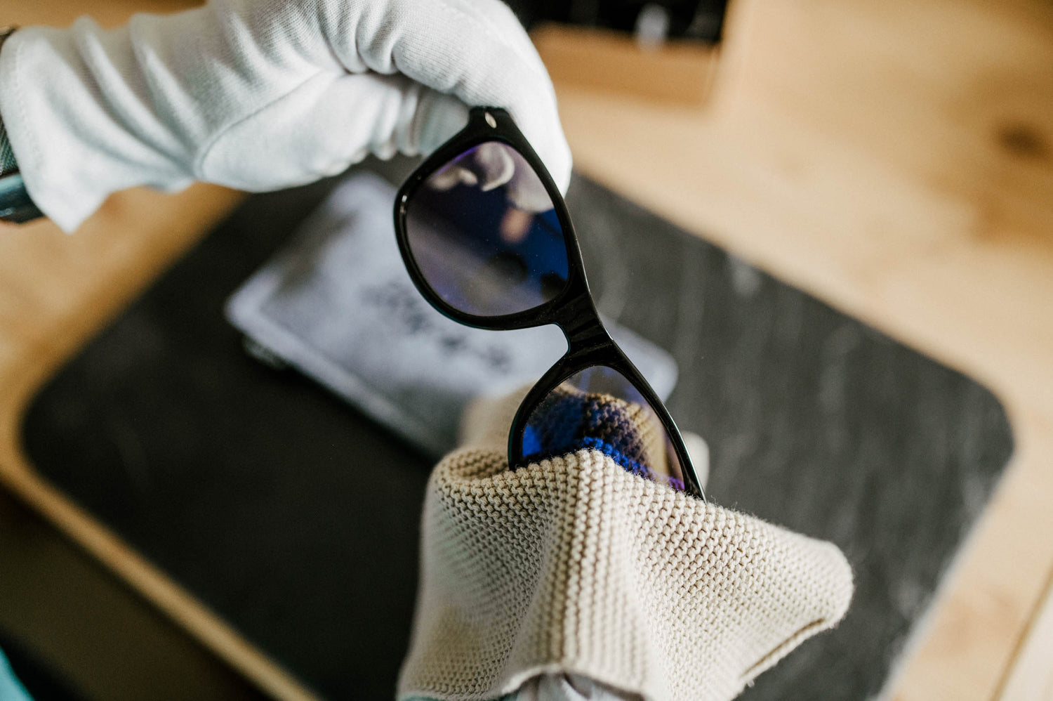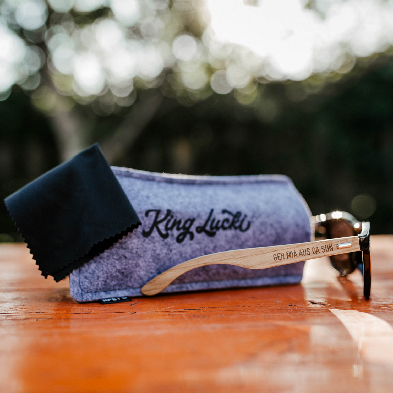 Unsere Sonnenbrillen kommen im Filzetui mit Brillenputztuch bei dir an. Schaut nicht nur guad aus, unsere Tascherl und Tücher sind recoursenschonend aus recyceltem PET hergestellt.