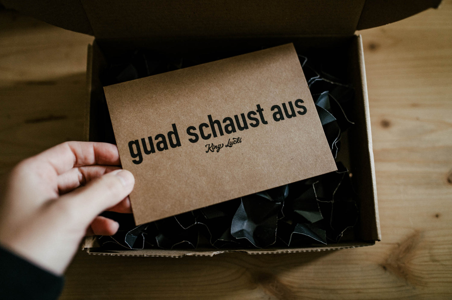 Guad g’stylt beim nächsten Festl, beim Bummel durch d’Stod oder als Hingucker im Biergarten. Mit King Lucki schaust du sowohl im Alltag als auch beim Volksfestbesuch richtig fesch aus. Dabei fühlen sich unsere Eichenholzbügel auf der Haut butterweich an. Nix drückt und unsere Unisex-Form passt auf jede Nosn.